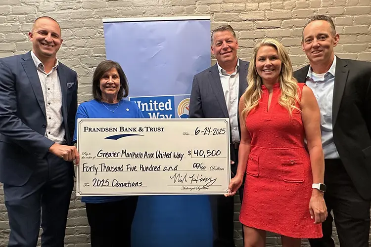 “We are so grateful for Frandsen Bank & Trust’s long-time support of Greater Mankato Area United Way through generous donations, volunteering, and community engagement,” says Barb Kaus, Greater Mankato Area United Way CEO. “This vital support is an investment in our region as we work together to improve lives through basic needs, health, and education.”